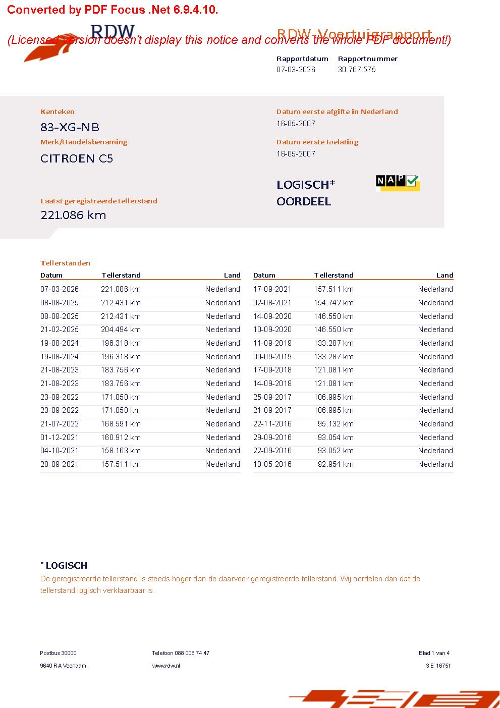Kilometerstand 221.086 km